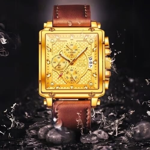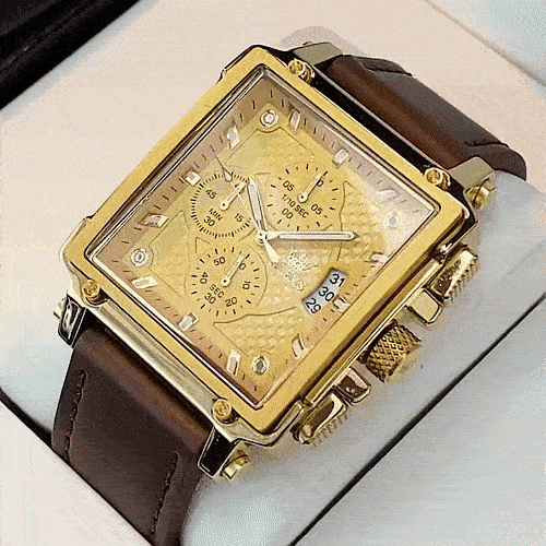 ✔️ تصميم مذهل يجمع بين الأناقة والفخامة، مع إطار من الفولاذ المقاوم للصدأ وحزام من الجلد الطبيعي عالي الجودة